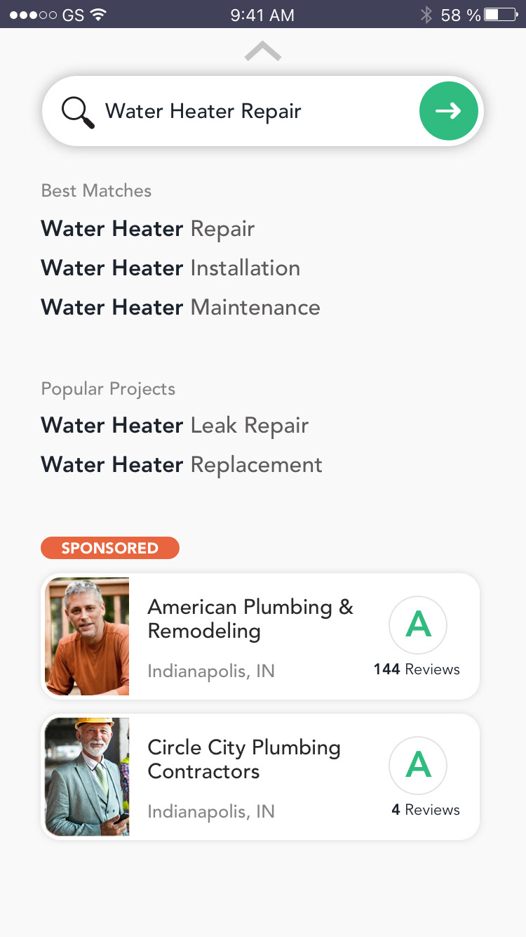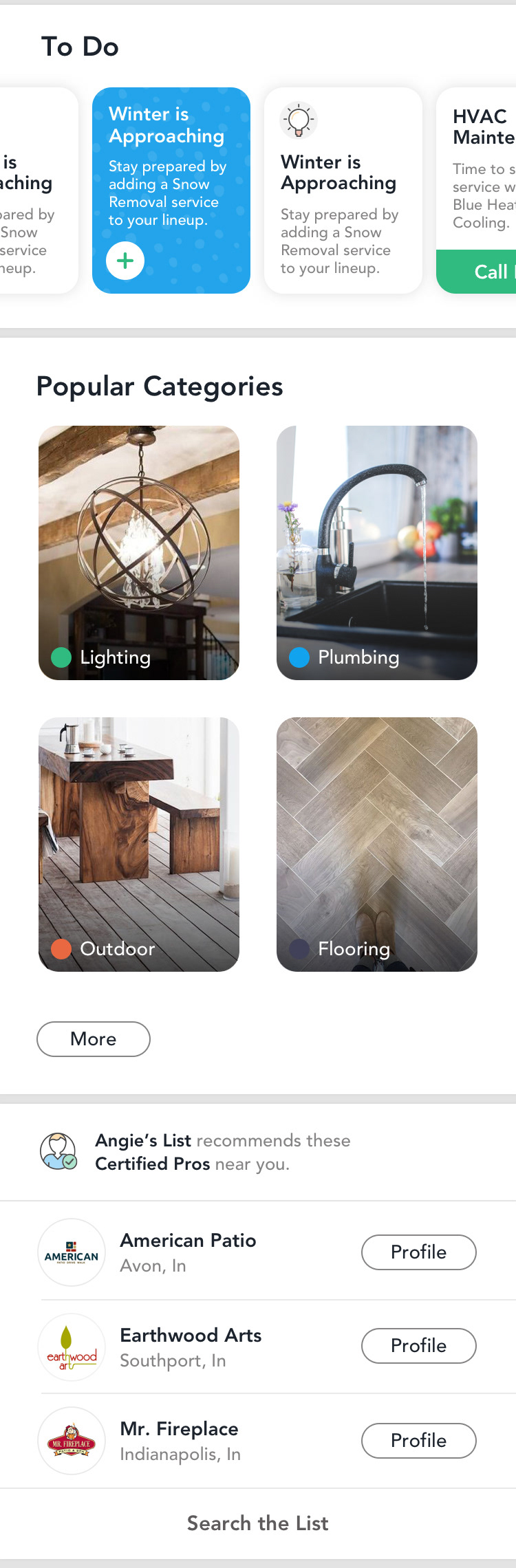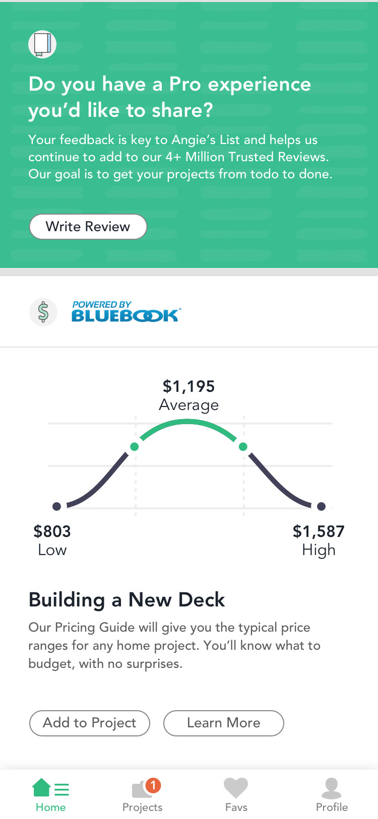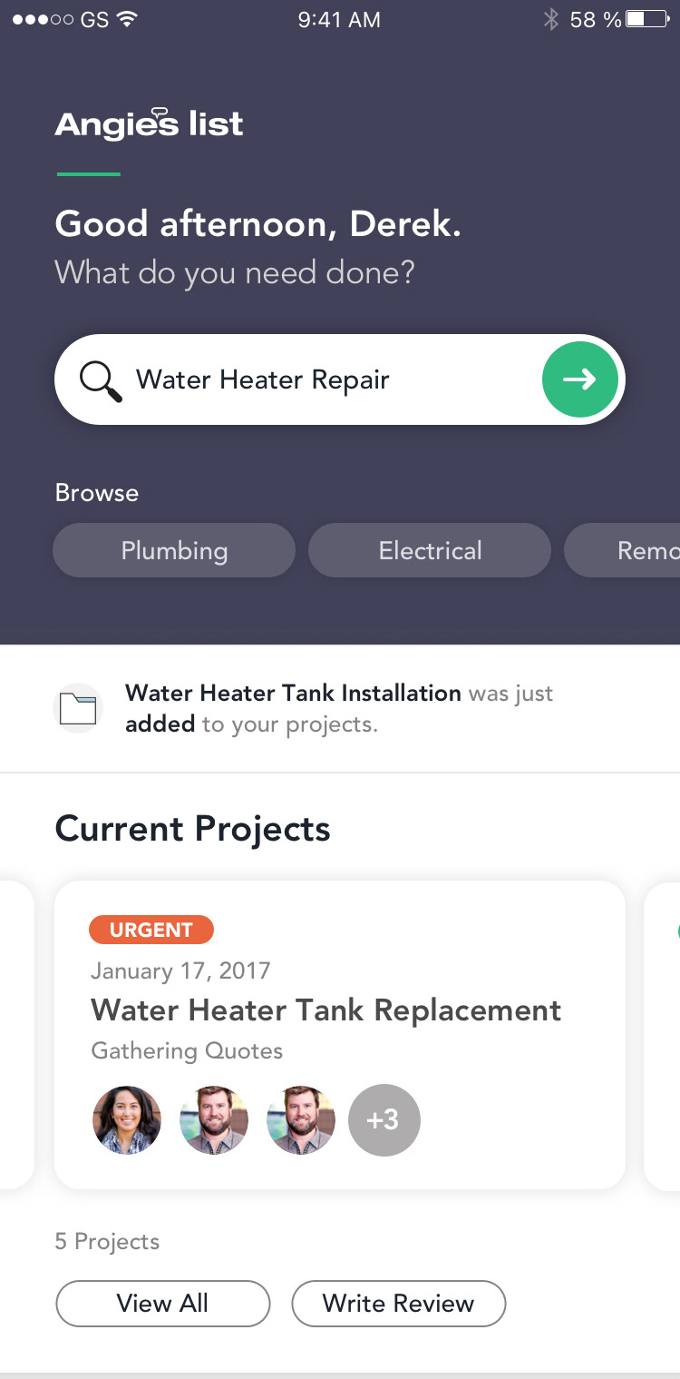 Using newly implemented brand guidelines, I worked with a small internal team to redesign the Angie's List customer-facing mobile app. Based on information from qualitative studies by our research team, we reorganized the hierarchy of information to better suit the needs and priorities of the users.